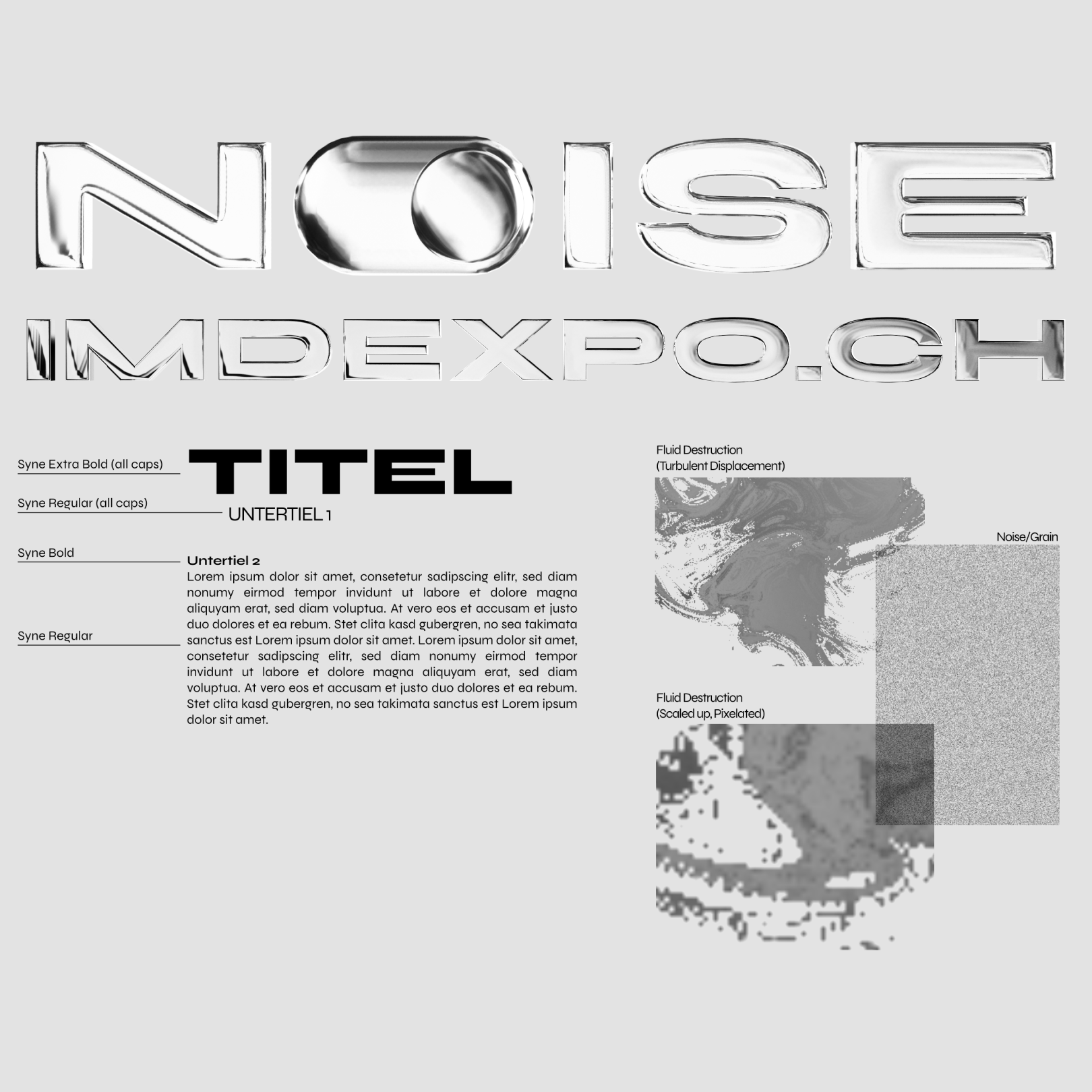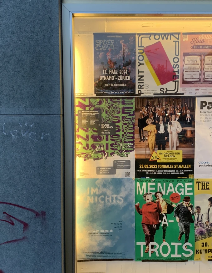 My school class did an exhibition to present everyone’s final projects. The work on the exhibition was a very collaborative task where everyone worked together. We decided to go with the concept/theme of «Noise.» The theme is supposed to represent the data and information overload in digital spaces. For the realization of the project, I was part of the branding team with help from Lena Hohl and Colin Kühnis. We were in charge of the style guide, key visuals and print media (posters, flyers, and stickers). Our goal was to visually embody the exhibition’s concept as accurately as possible.